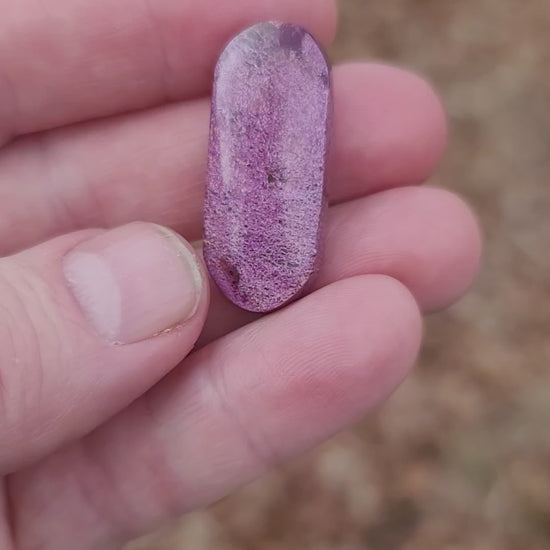 This cabochon features the rich purples and soft lavender tones that make Royal Stichtite such a beloved material among jewelry artists. Professionally stabilized for durability, it offers improved strength and a smooth, consistent finish—ideal for wire wrapping, bezel setting, or adding a bold pop of color to your next design.
