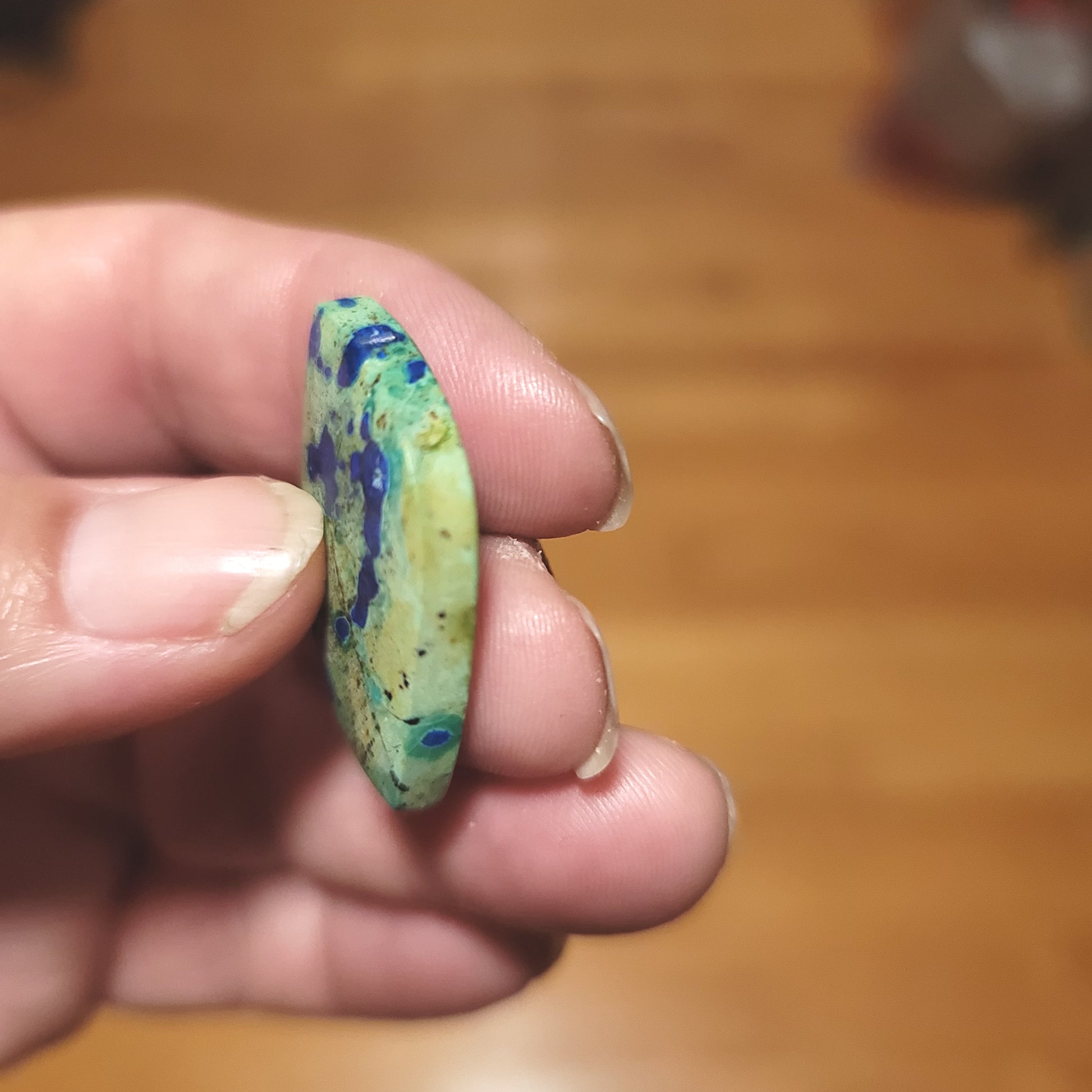 Each Arizona Morenci Azurite in Matrix cabochon is a testament to the rugged beauty of the American Southwest. Sourced from the legendary Morenci mining district, these stones feature vibrant azurite veins set in a naturally weathered matrix of light beige, white, or cream-colored rock—often composed of secondary iron and manganese oxides or kaolinite.